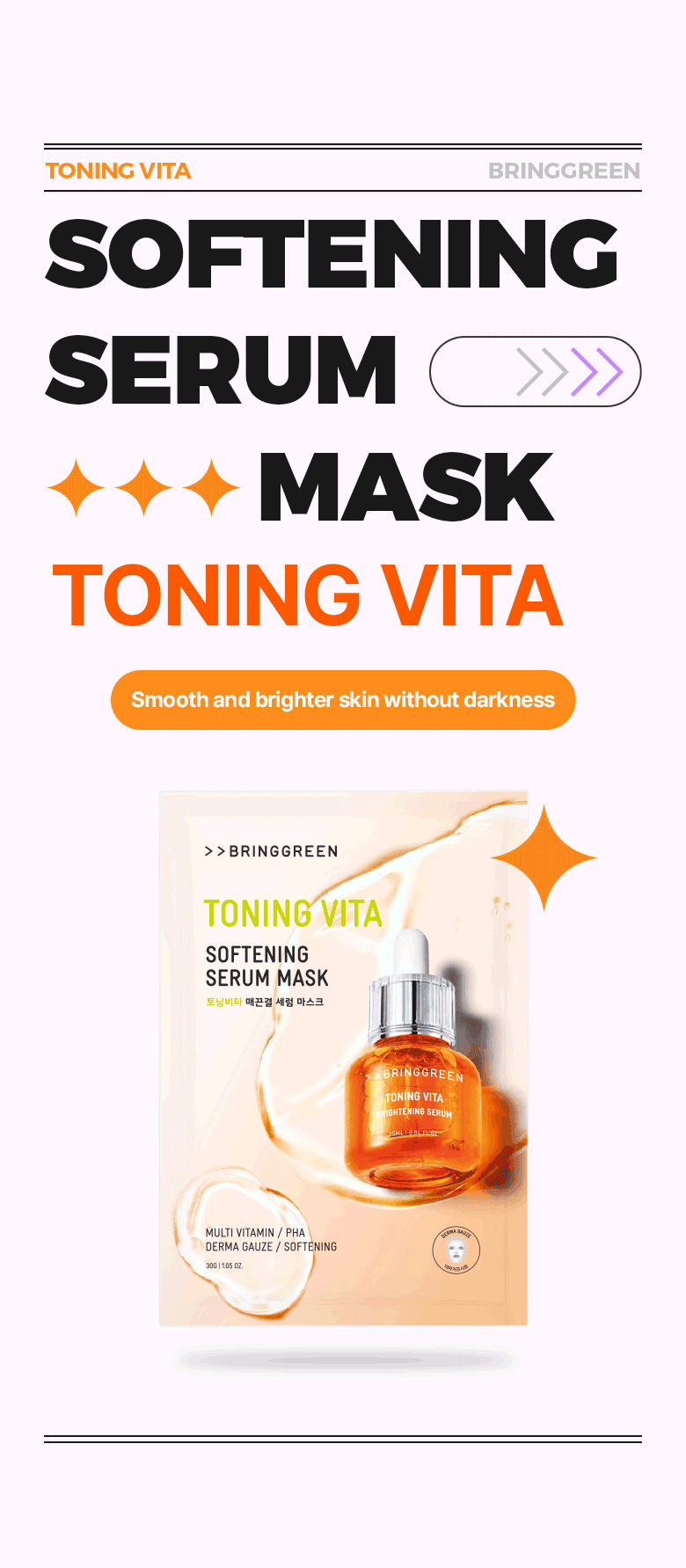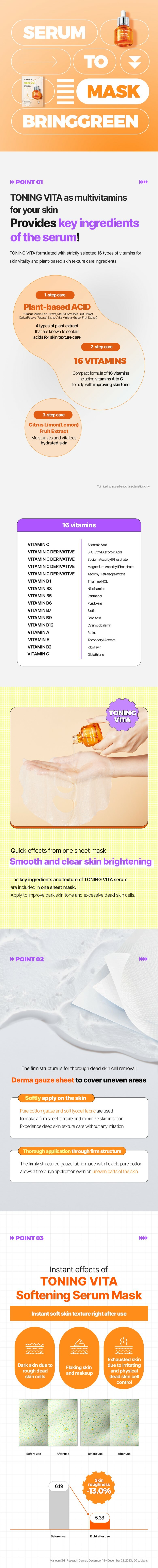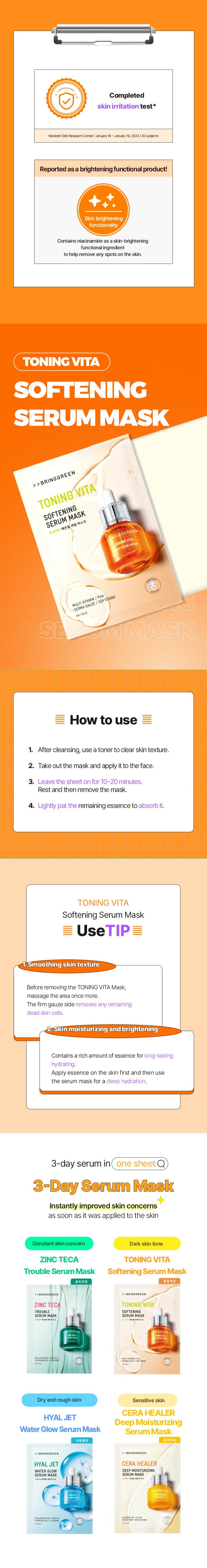 - A potent, fast-absorbing TONING VITA 20% Brightening Serum infused within the mask