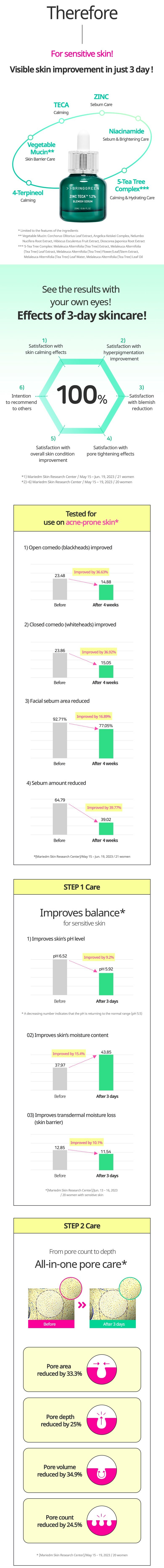 Anti-acne, refine pores, fade acne marks, reduce blackheads and whiteheads, regulate oil secretion