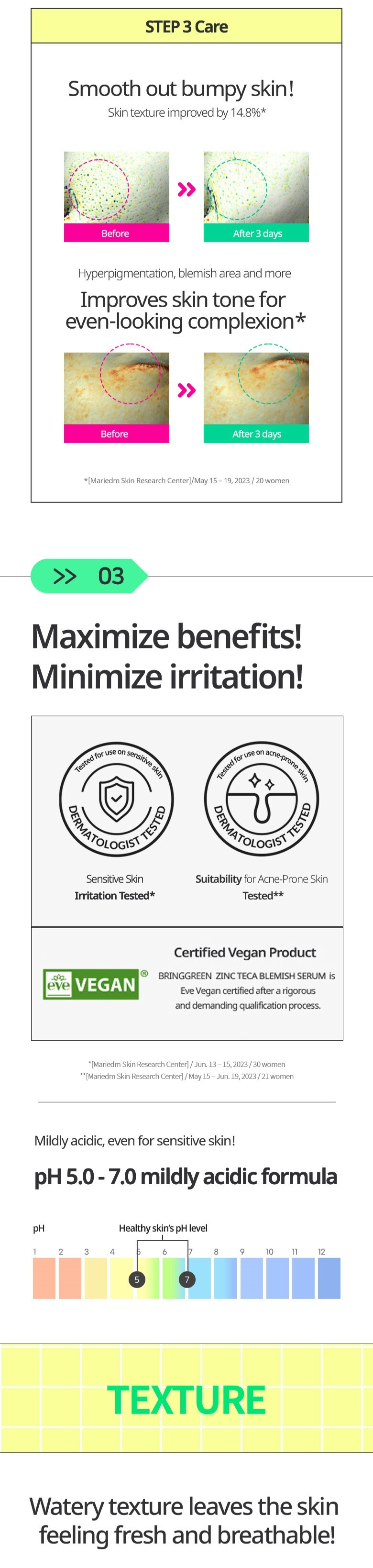 - Zinc PCA: Reduces whiteheads, improves clogged pores, and regulates sebum secretion